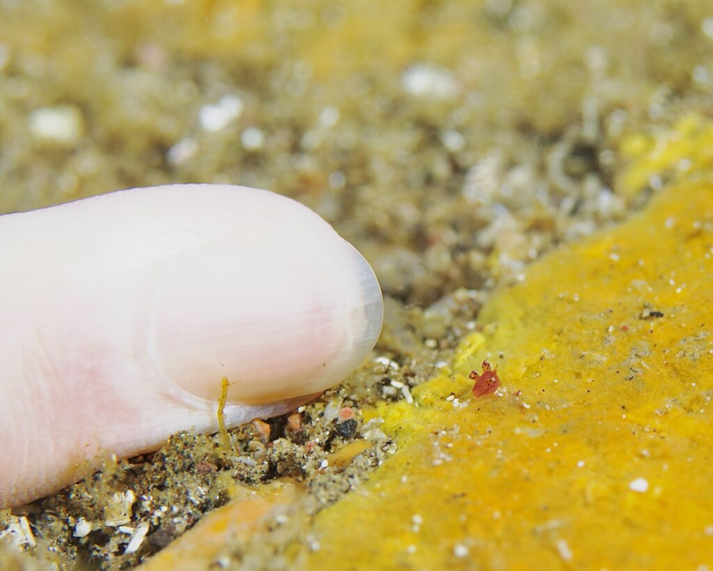 通称ニセピカチュウことミズタマspですが、予想に反してちらほら見かけます。餌がほとんど食べ尽くされたのに、何故かまだこんな小さな個体がいます。